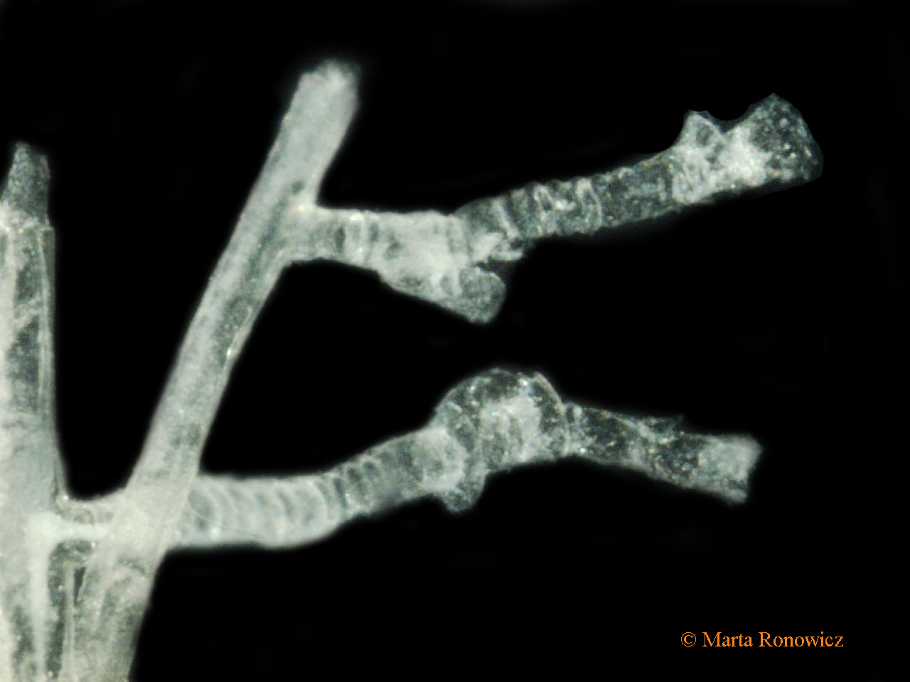 occasionally occurring nodes. Perisarc strongly corrugated (Fig.1), smooth stretches may also